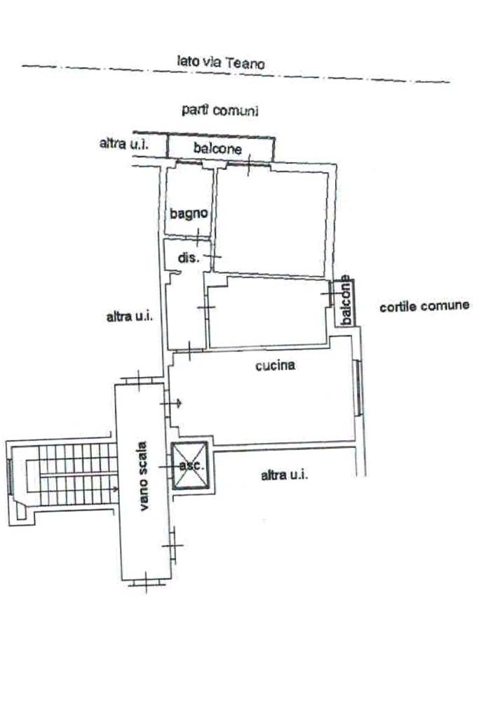 L'immobile è composto da ingresso in soggiorno con cucina a vista; proseguendo nel disimpegno, troviamo la zona notte, dove sono presenti due camere da letto, entrambe munite di balcone e un bagno finestrato con doccia.